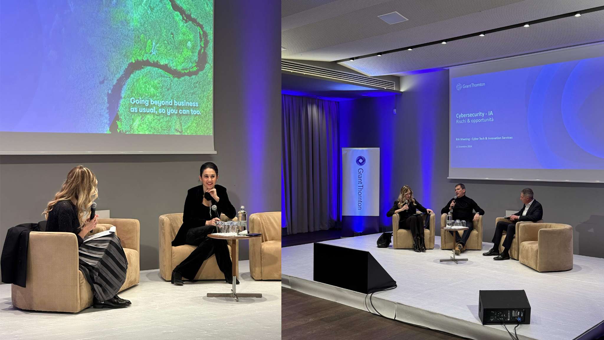 Riccardo Maria Monti, Presidente di Triboo Group, ha parlato di economia internazionale portando ad esempio alcune storie di successo di investimenti all’estero; Andrew Spannaus, Analista politico, Scrittore e Docente universitario, ha approfondito le dinamiche geopolitiche dovute al cambio di presidenza USA da Biden a Trump. Davide Levorato, Partner di Grant Thornton Blue e Roberto Antoniotti, Head of Technology & Innovation di Bernoni Grant Thornton hanno approfondito il tema AI e cybersecurity; Stefano Fanigliulo, Head of Marketing & Business Development di Valore D e Raffaella Cavallucci, HR Executive del Gruppo Ria Grant Thornton hanno fatto un’analisi delle best practices pratiche per un’organizzazione più inclusiva.